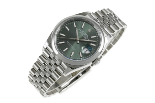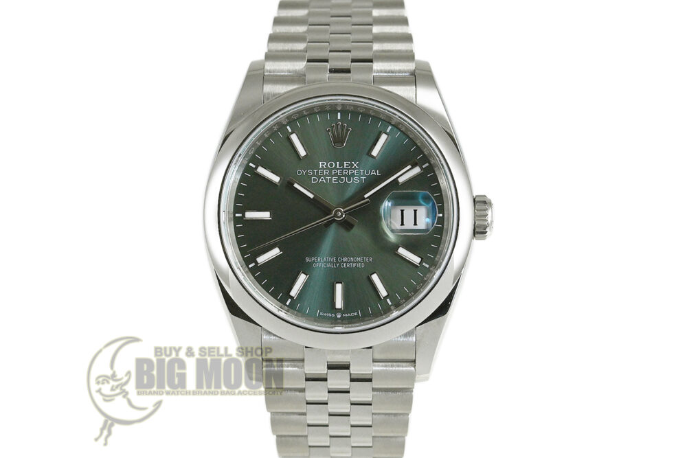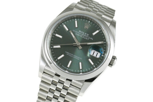 | コメント | 流行に左右されない美しさと機能を兼ね備えたロレックス・クラシック ウォッチ「デイトジャスト」。2019年に登場したRef.126200、小振りなケース径36mmサイズのモデルです。ミントグリーンダイアルが特徴的です。ロレックス完全自社製造の高精度クロノメーターキャリバー3235を搭載しています。裏蓋など使用に伴う少々の薄っすらとした軽い擦りキズはありますが目立つ様な深いキズはありません。 |