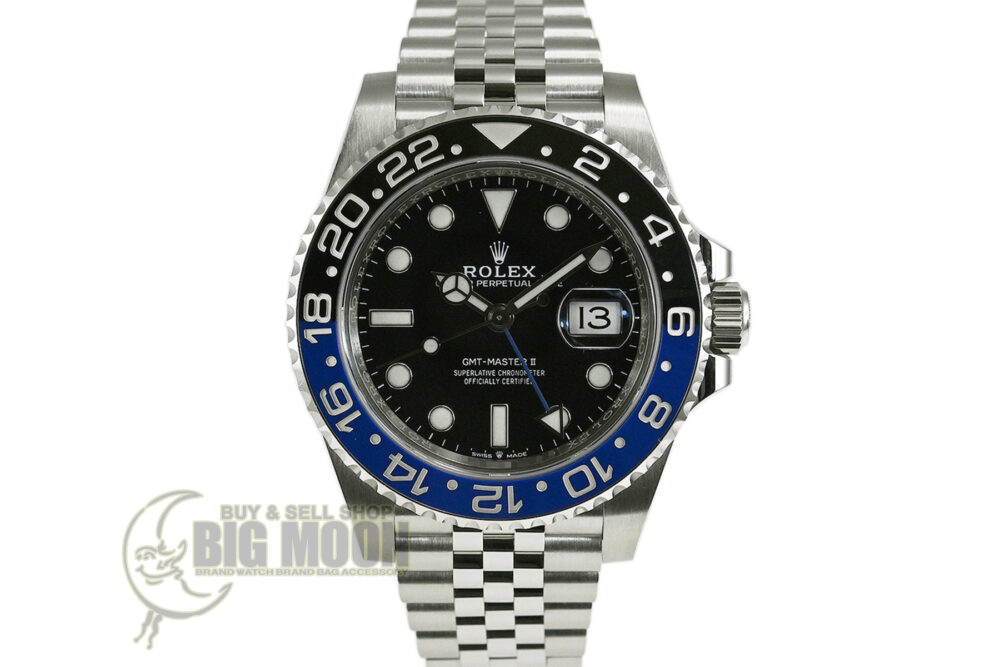 | コメント | 1955年に誕生した「GMTマスター」。進化したGMTマスターIIは回転ベゼルにより3箇所の時刻を知る事が出来ます。2019年から登場したRef.126710BLNR。両方向回転式、ブラック/ブルーのセラミック製ベゼルが印象的、エレガントなジュビリーブレスレット仕様です。約70時間のパワーリザーブを備えたロレックスキャリバー3285を搭載しています。鏡面部分に軽い擦りキズはありますが目立つ様な深いキズはありません。 |