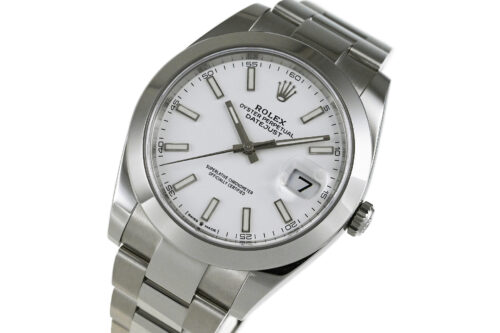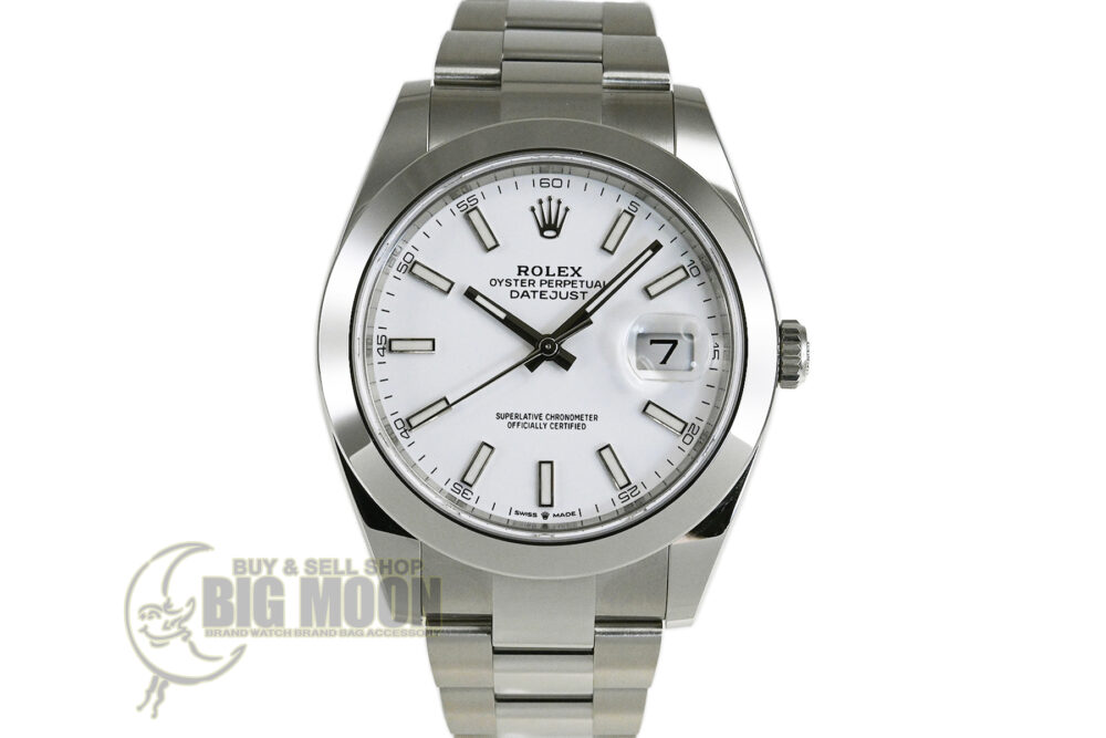 | コメント | 流行に左右されない美しさと機能を兼ね備えたロレックス・クラシック ウォッチ「デイトジャスト」、2017年から登場したRef.126300です。爽やかなホワイトダイアルが特徴的、ポリッシュベゼルにオイスターブレスがスポーティーカジュアルな印象です。ロレックス完全自社製造の高精度クロノメーターキャリバー3235を搭載。裏蓋など若干の擦りキズはありますが目立つ様な深いキズはありません。 |