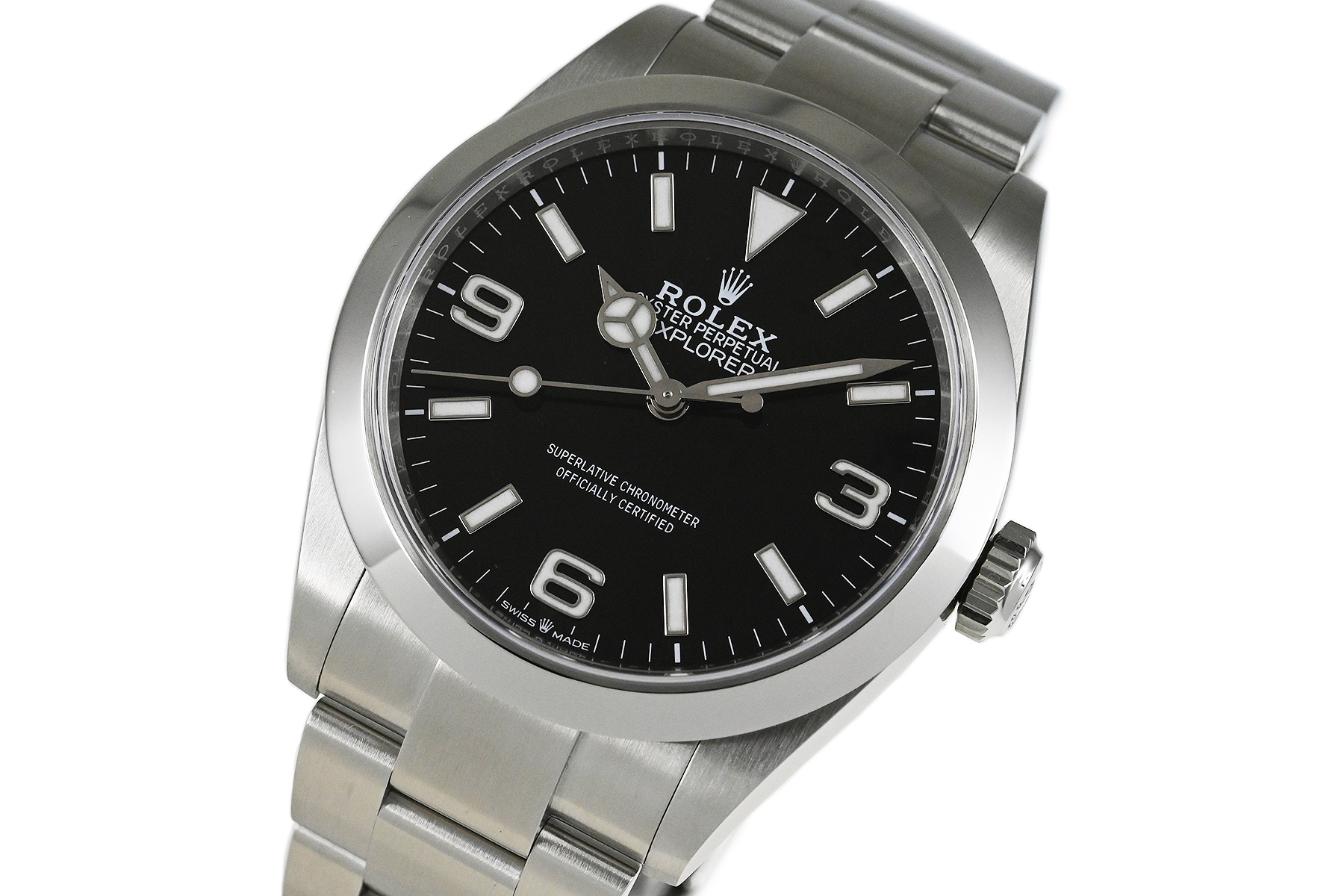 | コメント | 1953年デビューの「エクスプローラーI」。3・6・9の数字が特徴的、シンプルでスタイリッシュなデザインはどんなシーンにもマッチする、スポーツ・ロレックス人気モデルです。2021年に、2010年から生産されていた39mmサイズの「Ref.214270」からサイズダウンしモデルチェンジしたケース径36mmサイズの「Ref.124270」はそのままに、2023年に登場した40mmサイズの「エクスプローラー 40 Ref.224270」。人気モデルのエクスプローラーIが36mmと40mmでのサイズ展開となりました。搭載するムーブメントは同じくロレックス完全自社製造の高精度クロノメーターキャリバー3230を搭載しています。少々の軽い擦りキズはありますが目立つ様な深いキズはありません。 |