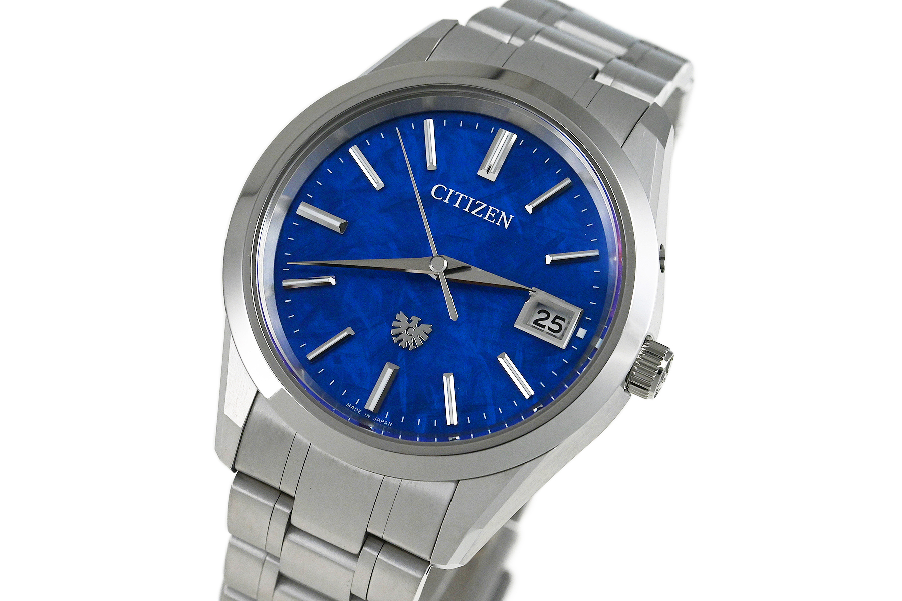| コメント | 時計の本質ともいえる精度にこだわった最高峰モデル「ザ・シチズン」。The CITIZEN 年差±5秒エコ・ドライブ搭載モデルです。ケース・ブレスには軽くてキズに強くサビにくい素材「スーパーチタニウム」を採用、模様入りの色鮮やかなブルーダイアルを採用した特定店限定モデルです。キズらしいキズはなくキレイなコンディションです。付属の革ベルトはDバックルの留め痕はありますが特に目立った傷みはありません。 |